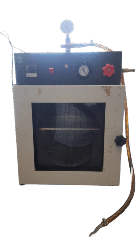 Analogue vacuum gauge, vacuum port, went port, Fuji temperature controller with thirstier with K type thermocouple